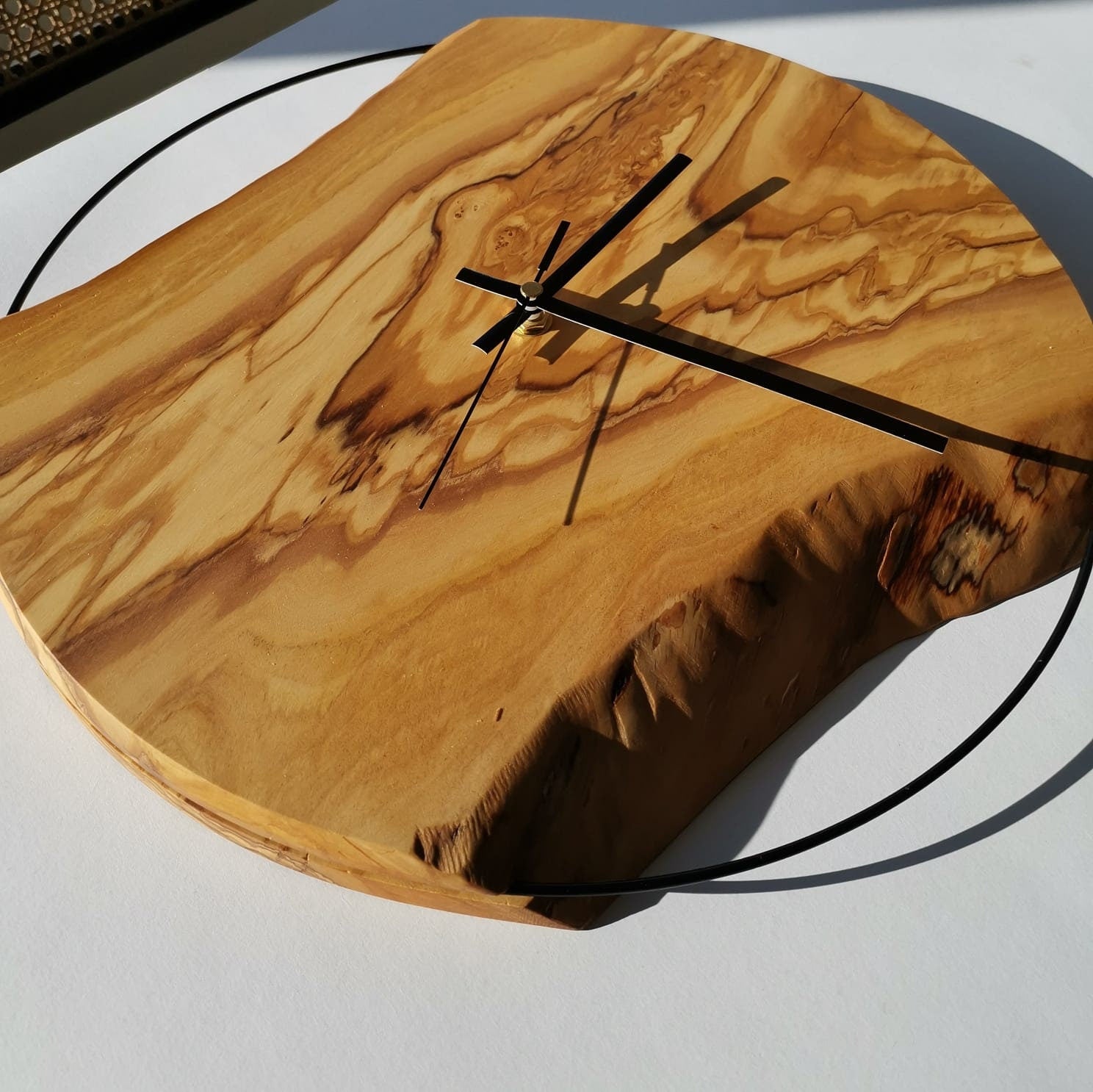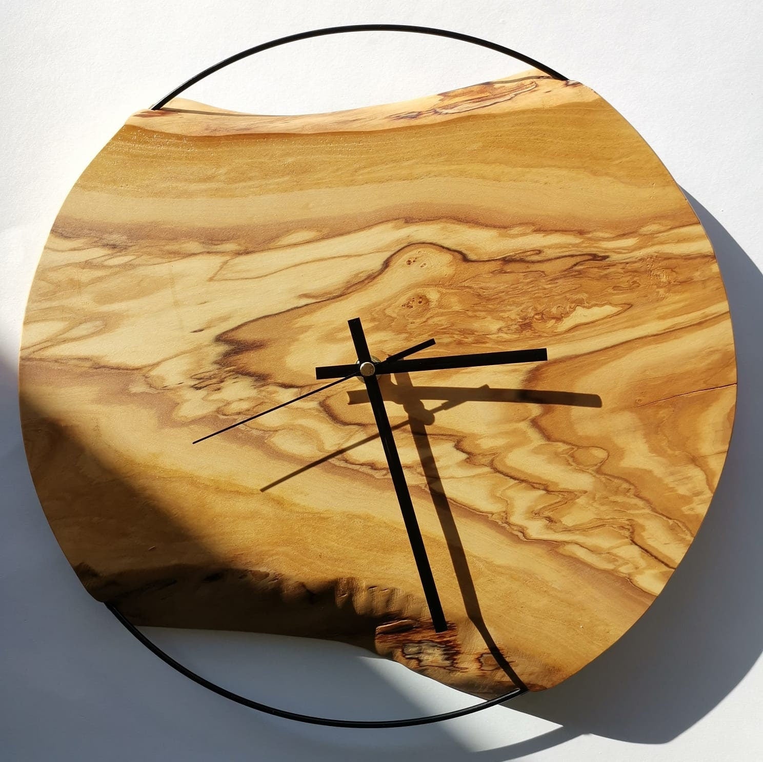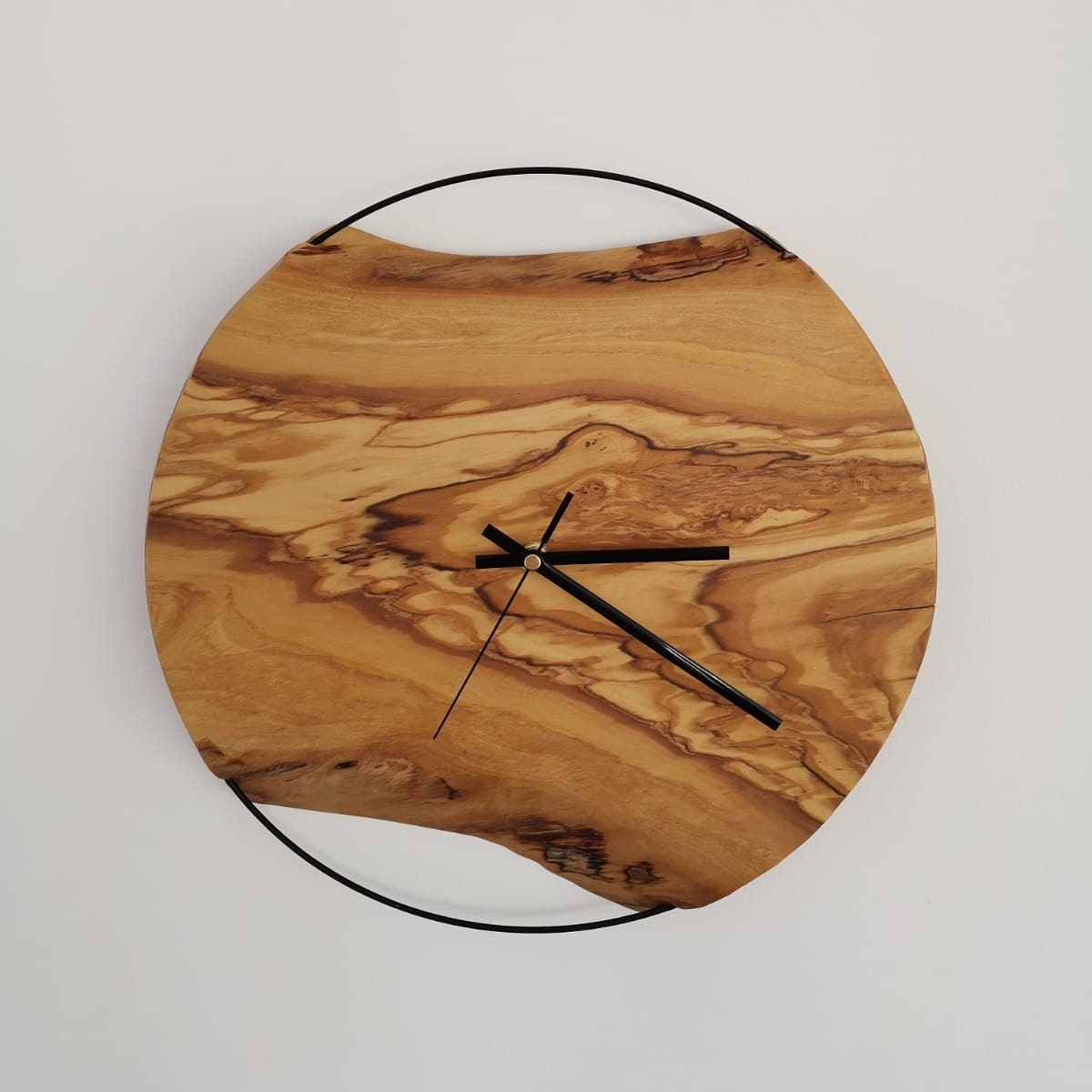 Diese Olivenholz Wanduhr mit ihrem faszinierenden Dekometallring ist nicht nur ein praktischer Zeitmesser, sondern auch ein echtes Kunstwerk, das deinem Zuhause eine natürliche und moderne Note verleiht.