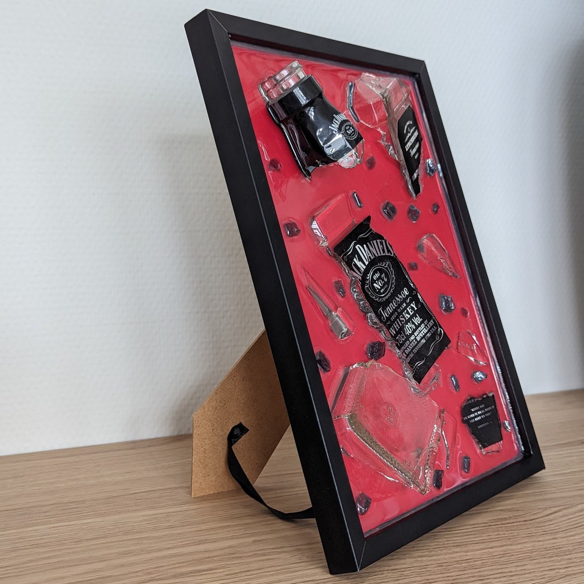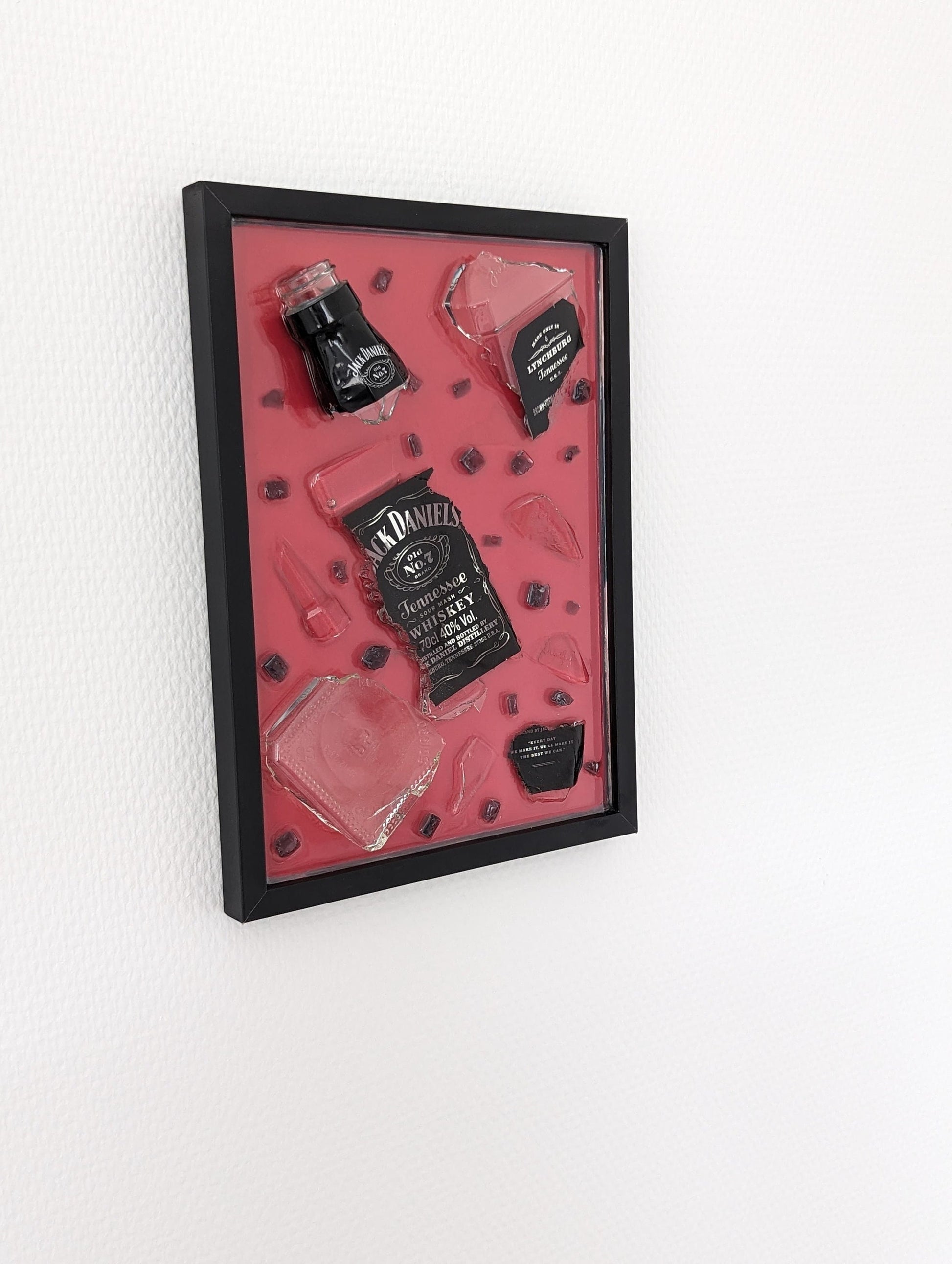 Material: Zerbrochene Jack Daniel's Whiskeyflasche, Epoxidharz